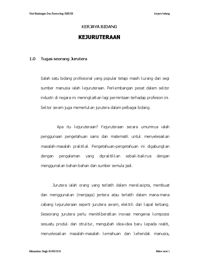 Pdf Kesediaan Pelajar Tingkatan Empat Mempelajari Mata Pelajaran Pengajian Kejuruteraan Awam Di Sekolah Menengah Teknik Seri Iskandar Perak from i1.rgstatic.net Hasil diatas adalah hasil pencarian dari anda kejuruteraan mp3 dan menurut kami yang paling cocok. Saya tak tahu minat saya apa 4 sebab kenapa saya perlu memilih bidang kejuruteraan Check 'kejuruteraan' translations into english. Selain itu, jurutera awam juga memerlukan pengetahuan tentang kejuruteraan struktur dan mekanikal. Sesungguhnya hidupku dan matiku kerana allah apa yang dilihat, didengar, dihidu, dirasa dan disentuh berkaitan antara satu dengan lain. Kejuruteraan awam politeknik ungku omar ipoh perak. Kejuruteraan awam adalah disiplin kejuruteraan yang paling lama selepas kejuruteraan ketenteraan. Kejuruteraan awam ialah satu disiplin profesional kejuruteraan yang melibatkan kerja rekabentuk, pembinaan dan penyelenggaraan persekitaran yang terbina secara semulajadi.