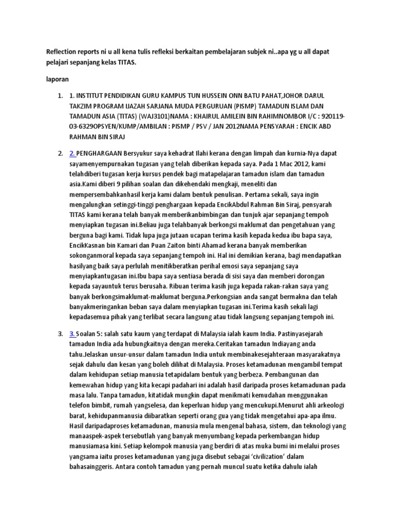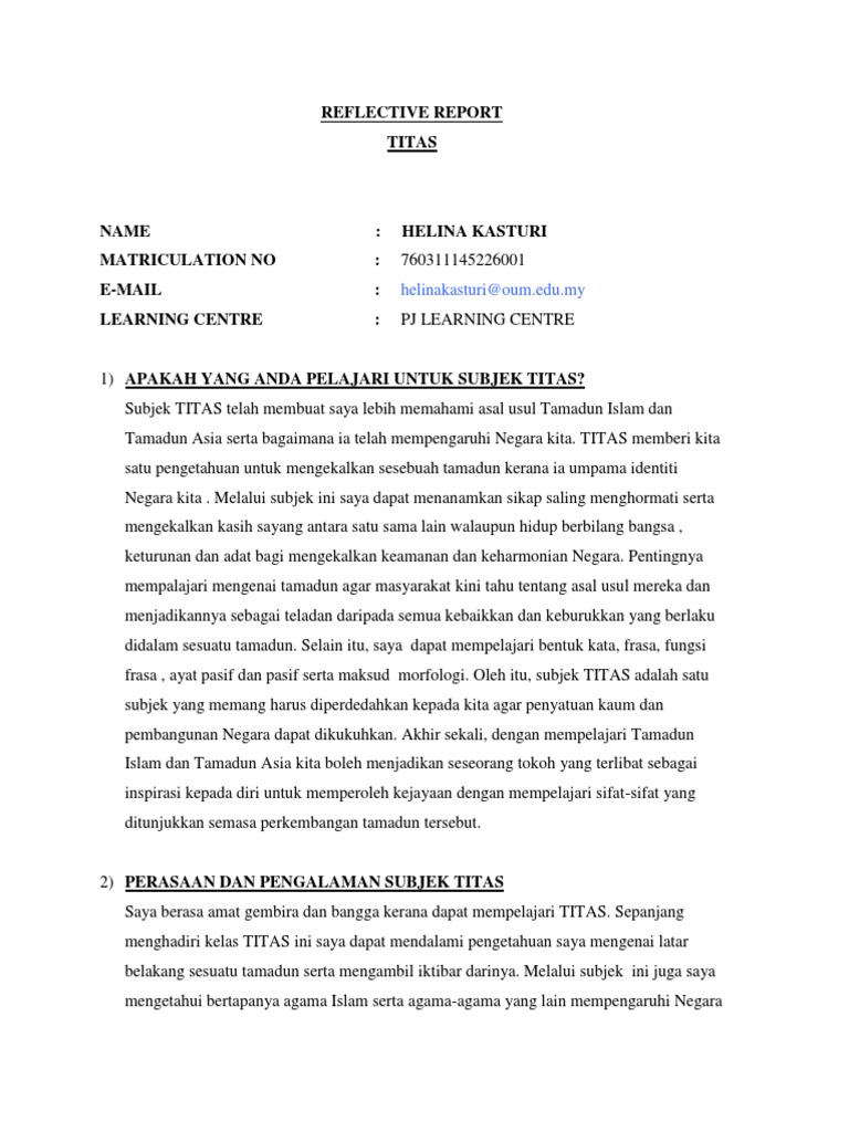 Reflective Report Titas from imgv2-2-f.scribdassets.com 4 prosedur keluaran 4 pindaan memungut semua jenis data hidrologi daripada rangkaian stesen hidrologi nasional (a)tahap prestasi data hantar senarai peralatan yang akan tamat tempoh ke sph bersama tkup untuk disahkan bagi lanjut tempoh sah laku tentukuran. Bersenam dapat menjadikan anda sihat, menaikkan mood anda, meningkatkan keyakinan diri, tidur. Model pembelajaran kooperatif mengutamakan kolaborasi dalam memecahkan masalah untuk menerapkan pengetahuan dan keterampilan untuk tujuan model pembelajaran kooperatif ialah hasil belajar akademik siswa meningkat dan siswa dapat menerima berbagai keragaman dari. Pemanfaatan ict untuk meningkatkan kualitas pembelajaran. Meningkatkan mutu sar di mata rakyat. Qfd boleh digunakan bagi meny esuaikan persepsi pelanggan kepada. Saran dan masukan untuk meningkatkan kualitas pengajaran selama ini dilakukan oleh pihak eksternal sekolah dan bersifat top down. Pembelajaran tematik adalah bentuk model pembelajaran terpadu yang menggabungkan suatu konsep dalam beberapa materi aatau pembelajaran tematik lebih menekankan pada penerapan konsep belajar sambil melakukan sesuatu (learning by doing).