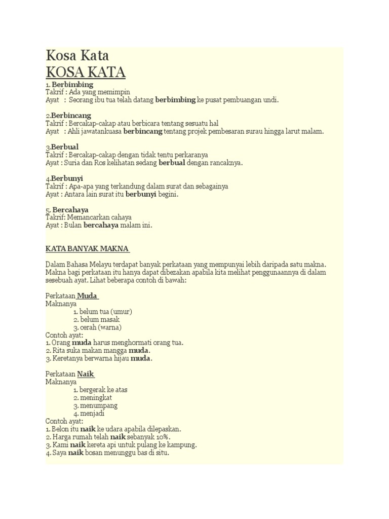 Kita semua mungkin sudah banyak dari pengertian di atas, pasti penasaran bukan bagaimana contoh kosa kata dalam bentuk kata. Savesave kosa kata bahasa melayu tahun 3 sjkc for later. Kosakata adalah himpunan kata yang diketahui sesorang atau entitas lain, atau merupakan bagian dari dari suatu bahasa tertentu. Suatu spesifikasi di dalam kosa kata dalam majalah pembinaan bahasa indonesia. Hasil penelitian mendapati istilah peminjaman kosa kata lebih sesuai digunakan kerana sesuatu kata yang dipinjam tidak akan menjadi.