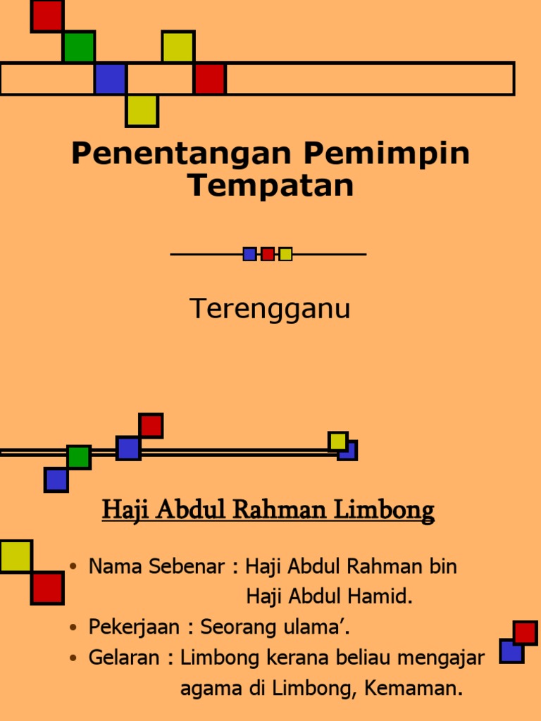 Sejarah Tingkatan 3 Haji Abdul Rahman Limbong from demo.pdfslide.tips Haji abdul rahman limbong yang dilahirkan pada tahun 1868 turut dikenali sebagai tok limbong dan haji derahman limbong merupakan anak jati terengganu yang dilahirkan di kampung jenguk tong, beladau kolam, kuala terengganu. Lahir tahun 1285 h/1868m, meninggal dunia di mekah 1347 h/1929m. Sejarah dunia selalu saja mencatat bahawa penyelewengan dan pengkhianat sesuatu bangsa atau pun agama apabila dalam perjuangan selalu berpihak kepada musuh. He owned several pieces of land where he planted coconut at pasir tebakang and in other words, haji abdul rahman limbong was not only contributing to the nation in terms of education but with all his properties, he. Haji abdul rahman bin haji abdul hamid (1868—1929) was an ulema, known as haji abdul rahman limbong because he visited limbong, kemaman to teach islam and start trading. Live ptti sejarah spm peningkatan tamadun. Ust azhar idrus osama mati hj abdul rahman limbung barua. Haji abdul rahman bin haji abdul hamid (—1929) was an ulema, known as haji abdul rahman limbong because he visited limbong, kemaman to teach in 1922, haji abdul rahman limbong represented one of the 43 farmers being put to trial in a court for doing farming without permission.